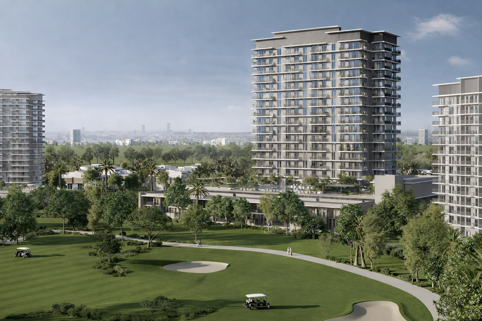 Golf Acres by Emaar Properties presents refined residences set within the lush landscapes of Dubai South. The development combines elegant architecture with direct access to an 18-hole championship golf course, creating a lifestyle rooted in nature and modern comfort.